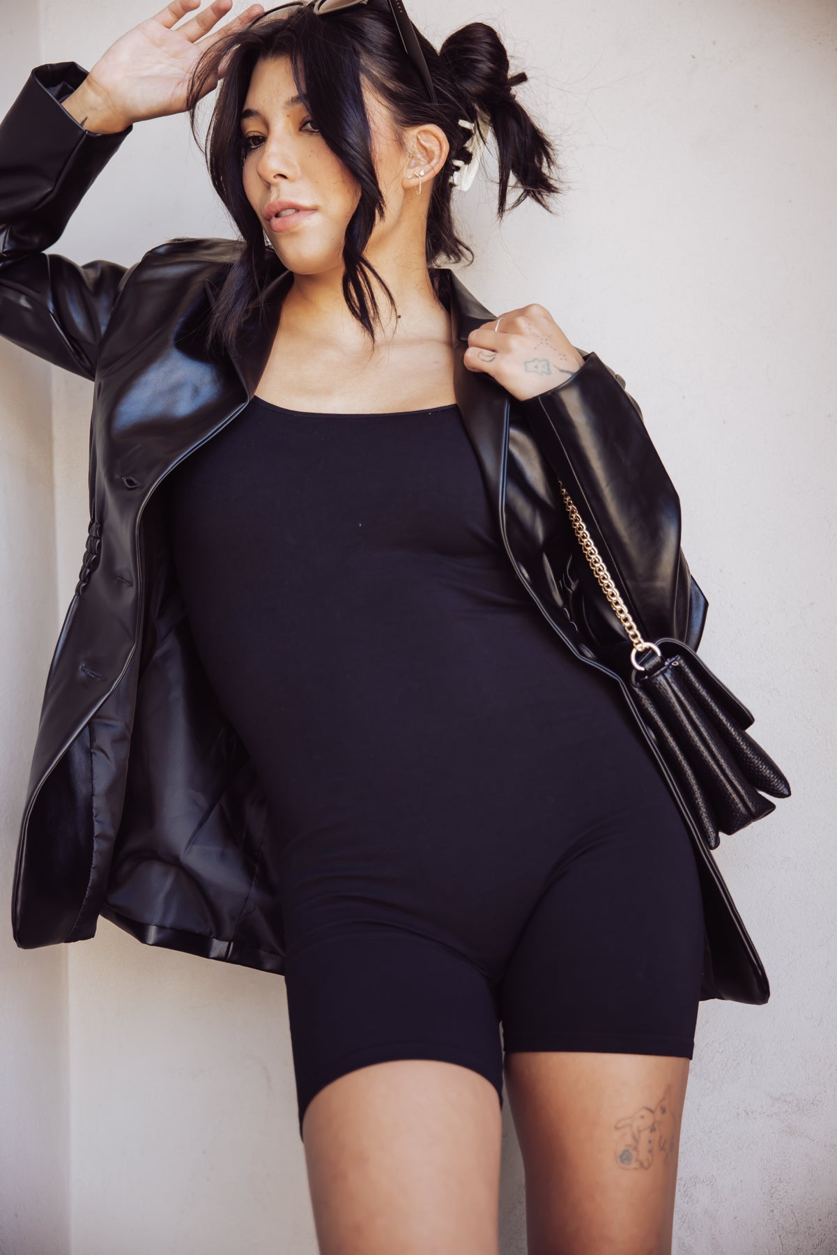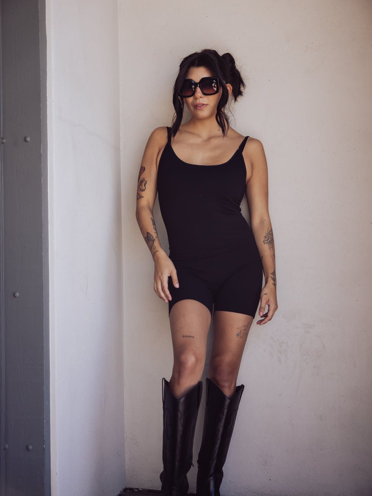 Show up and show off in this cool and casual one to watch slip romper. Featuring athleisure vibes with adjustable straps, scoop neckline and cute shorts, you'll have a look that can't be beat! Just make sure to keep a watchful eye out - your style's gonna turn heads!