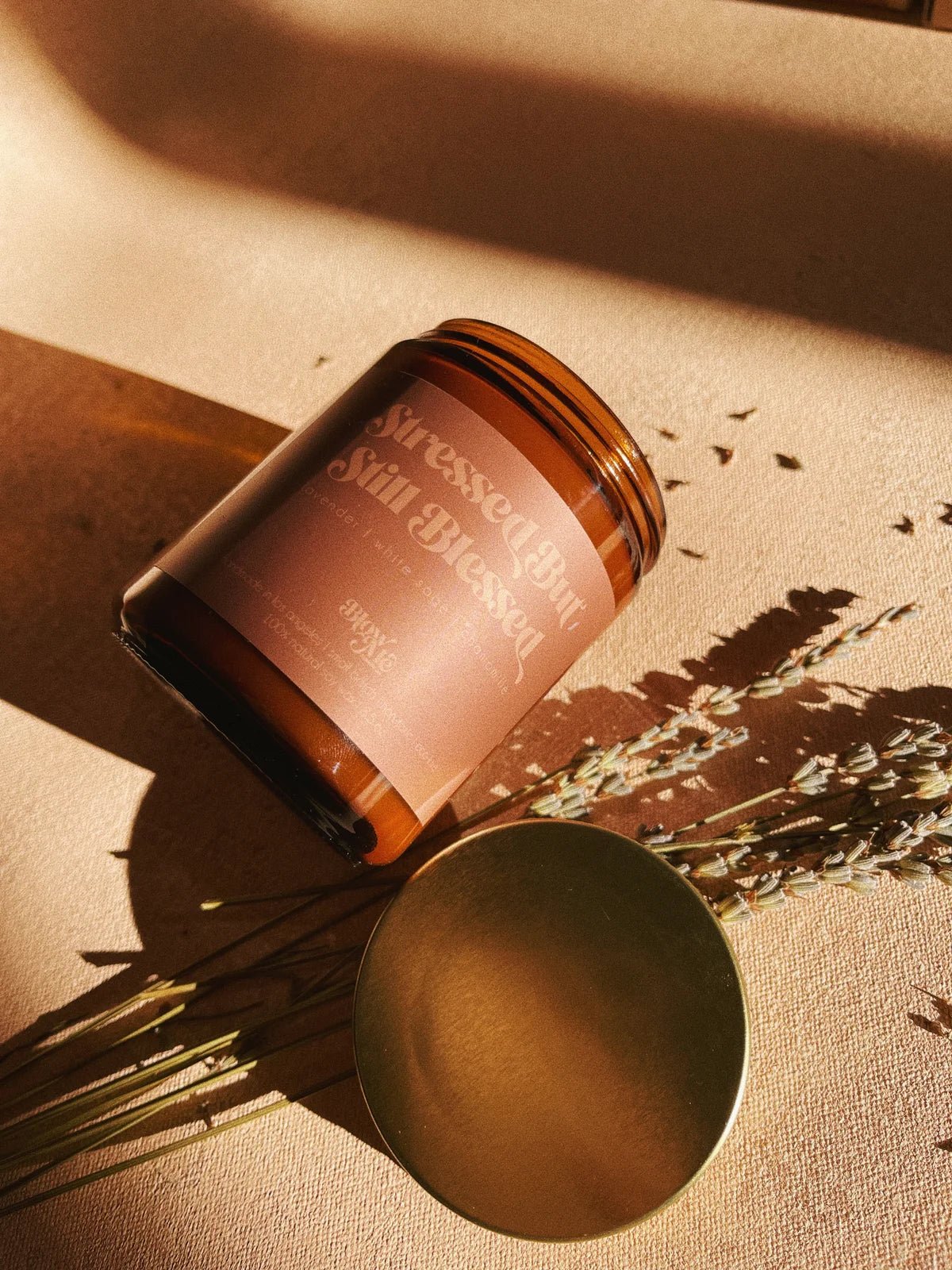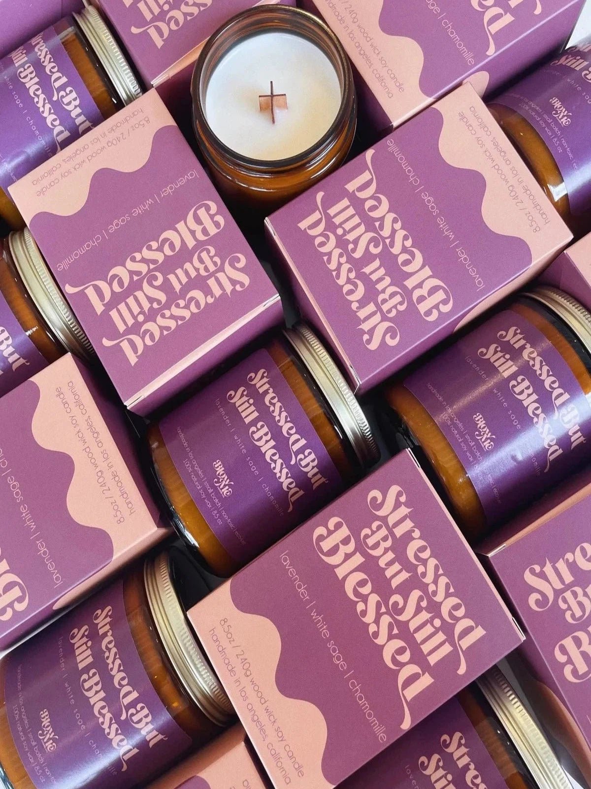 STRESSED BUT STILL BLESSED SOY CANDLE - 8.5 OZ | JAYDENP.COM – Jayden P Boutique