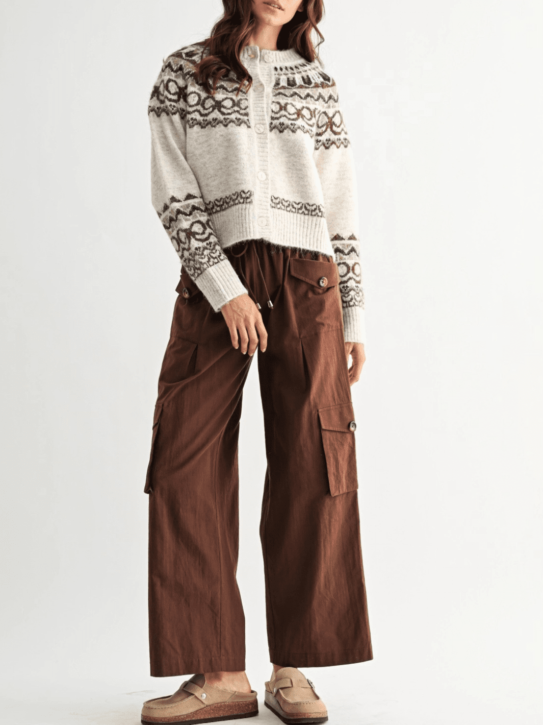 Refined, timeless, and effortlessly polished—this Nordic-inspired wool-blend cardigan is designed to elevate your everyday workwear. Featuring a classic pattern in versatile neutral tones, it brings subtle texture and visual interest while maintaining a clean, professional look. The tailored silhouette offers structure without sacrificing comfort, making it ideal for long days at the office or polished layering for meetings and events.