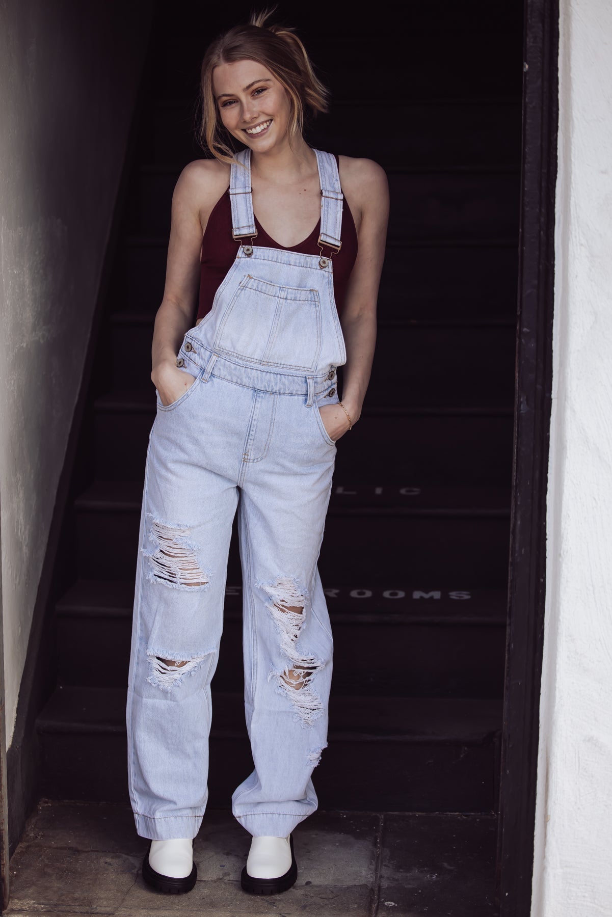 Overalls are such a timeless style! Our Sean Pocketed Distressed Denim Overalls come in a light wash with a front bib and side button closures. These overalls have no stretch.