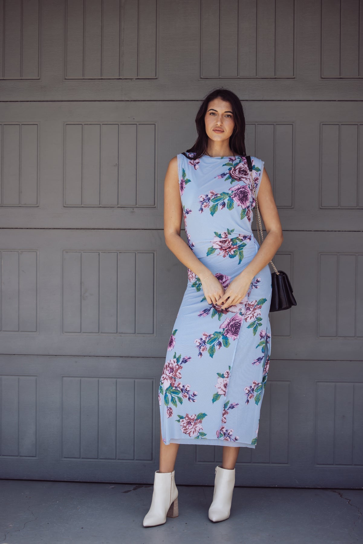 FREE PEOPLE CARMEL MIDI DRESS WITH SLIT - BLUE FLORAL JAYDENP.COM – Jayden P Boutique