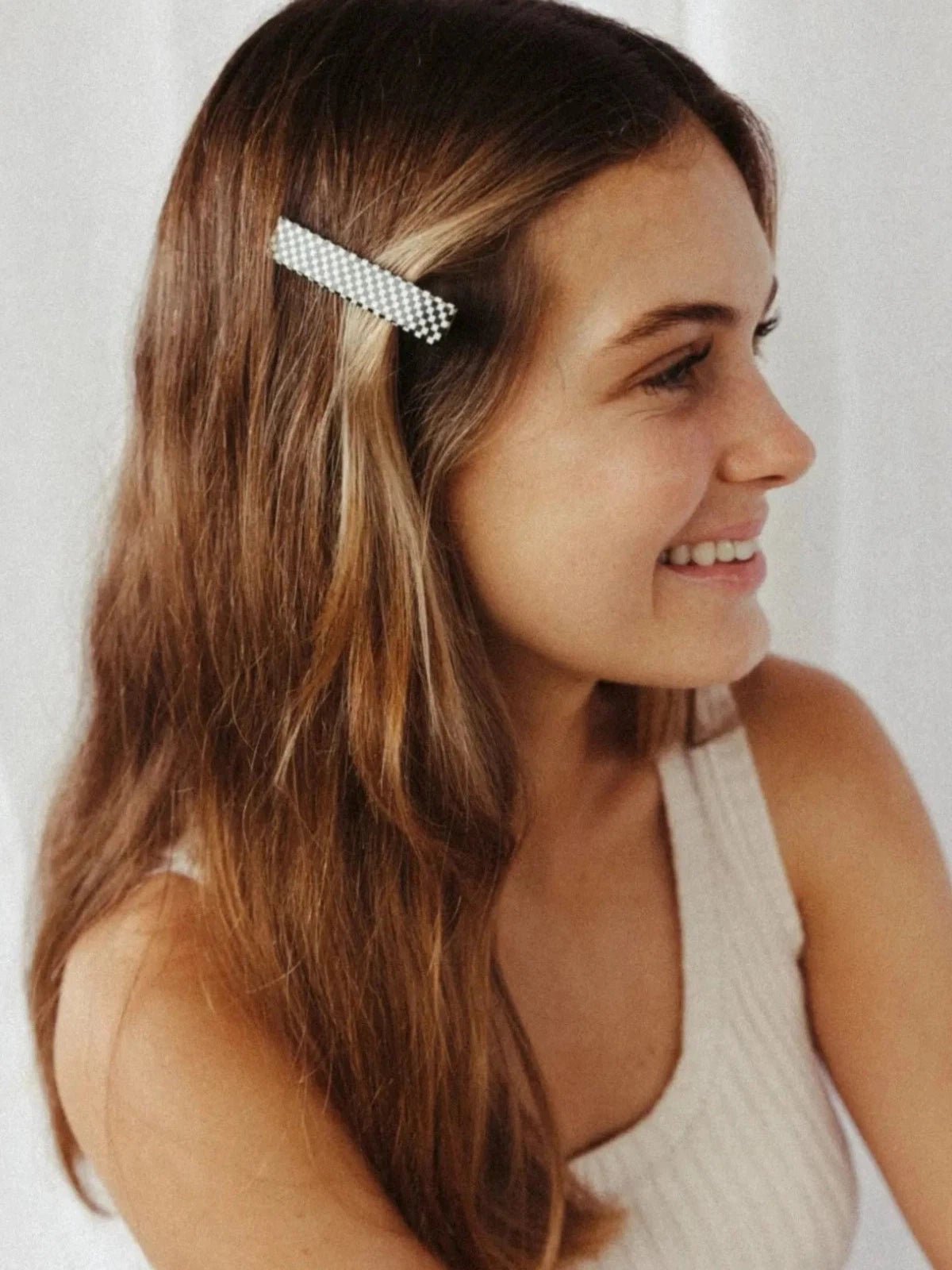 NAT & NOOR FLORA HAIR CLIP SET - BLACK & WHITE CHECKERED