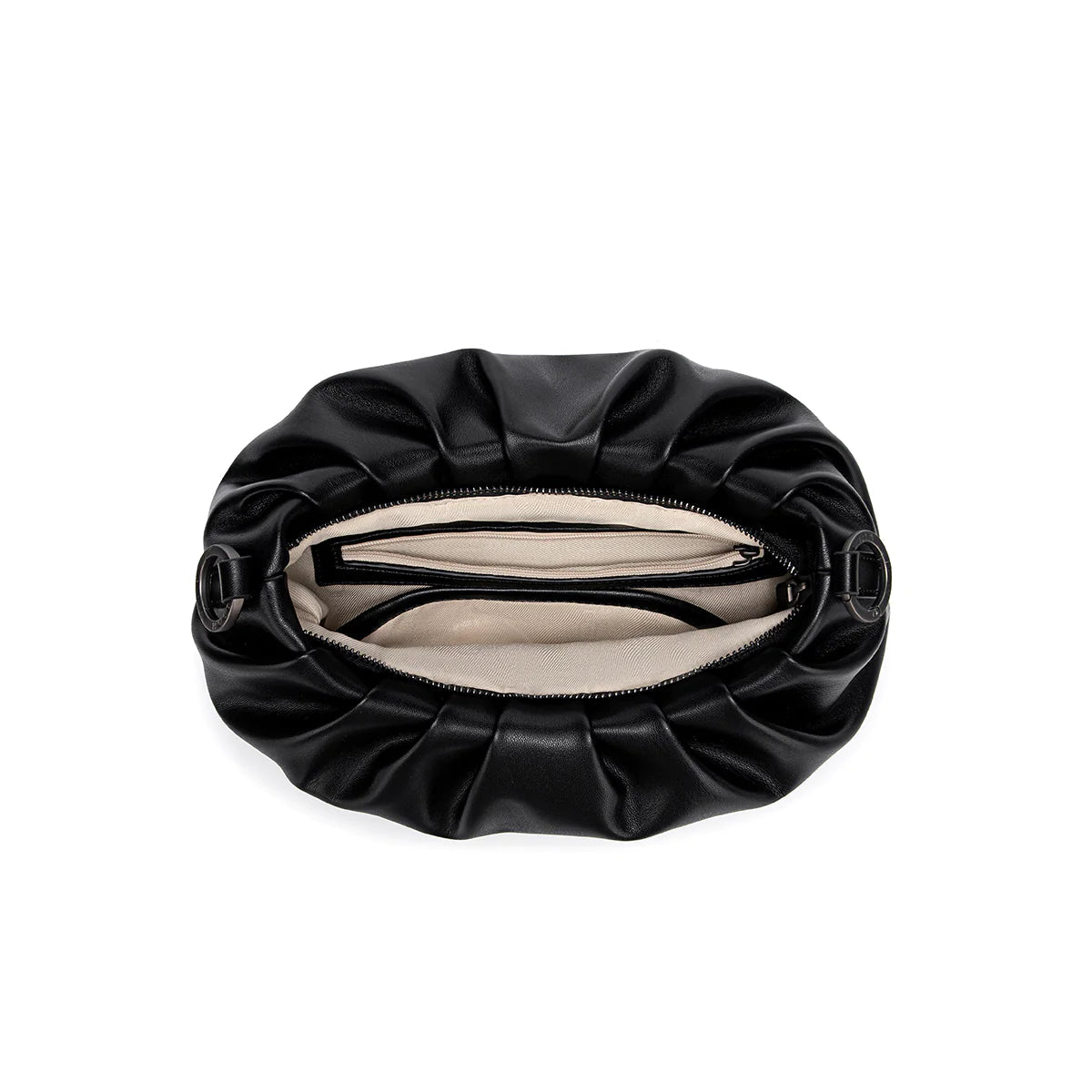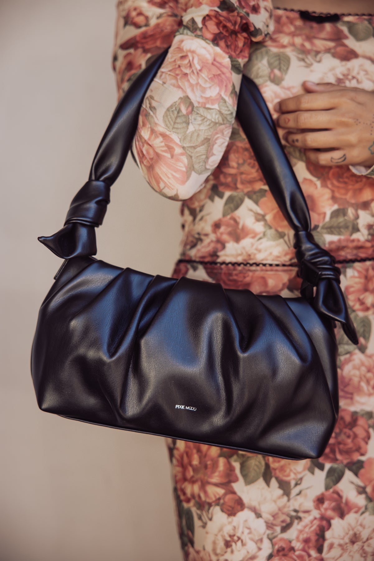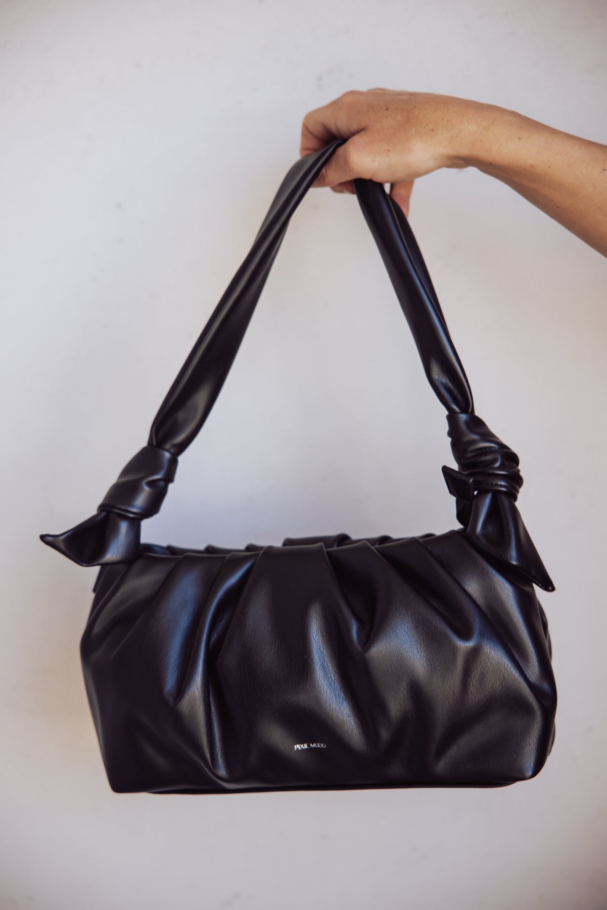 This elegant ruched bag can be worn as a shoulder bag or as a clutch! Detach the knotted strap for two versatile looks in one. Zips closed and lined with our classic recycled bottle lining.