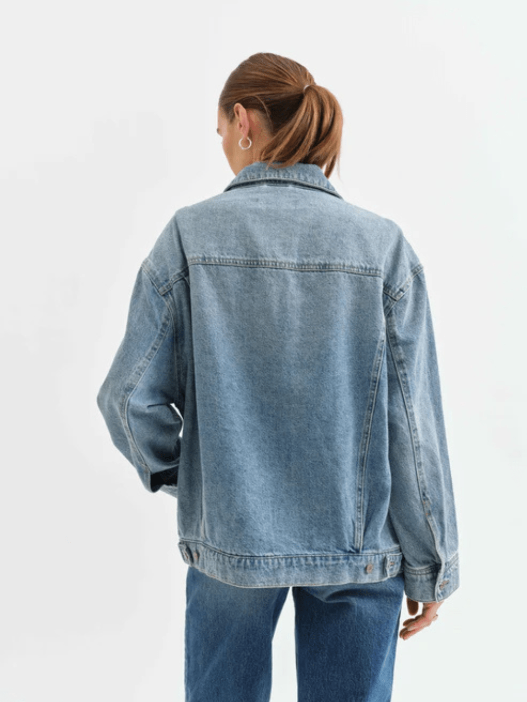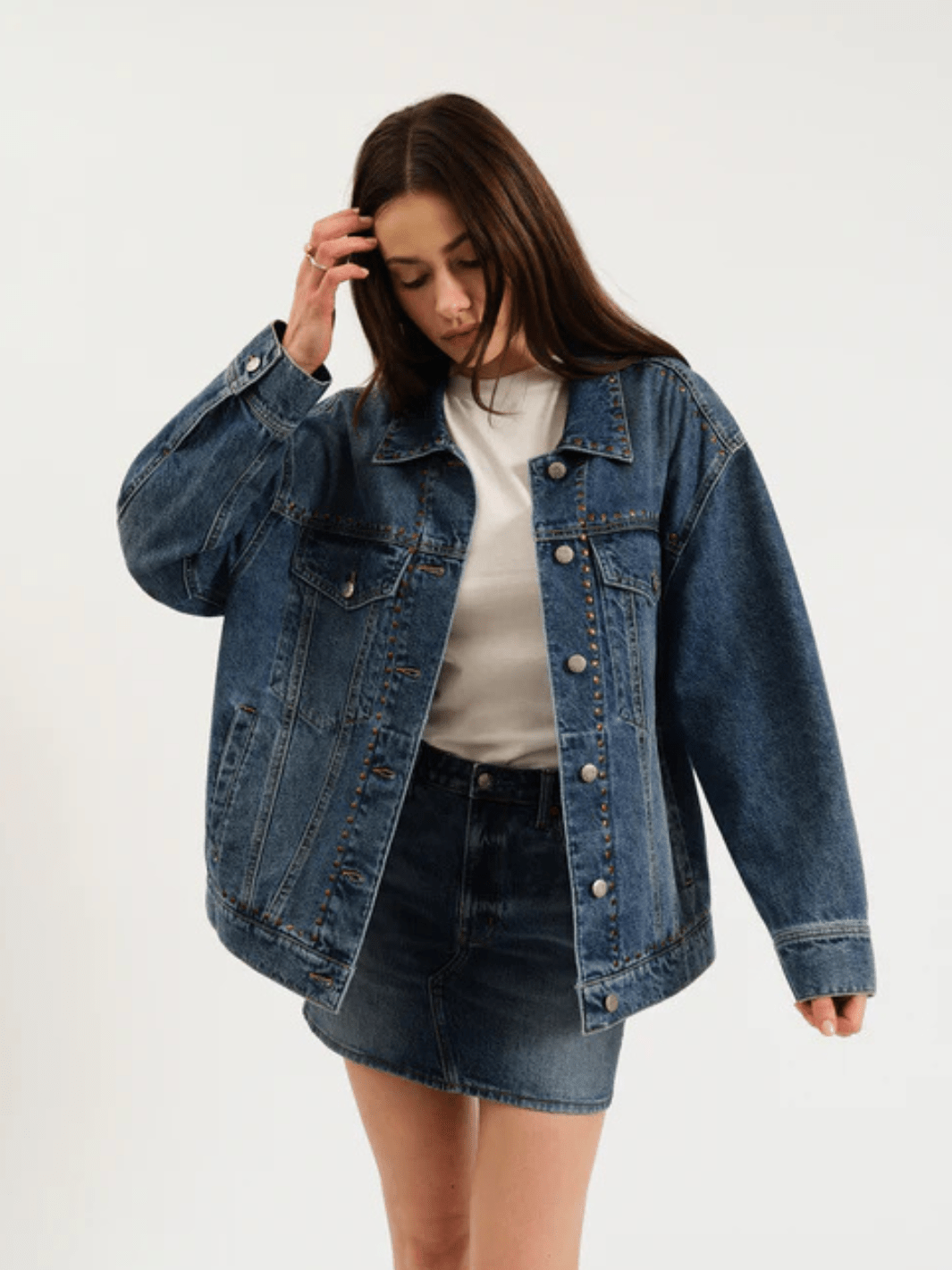 It’s the kind of denim jacket you’ll live in. Throw it over a sundress for cool contrast or pair it with joggers and sneakers for everyday edge. The rigid 100% cotton gives it that authentic denim feel that only gets better with time.