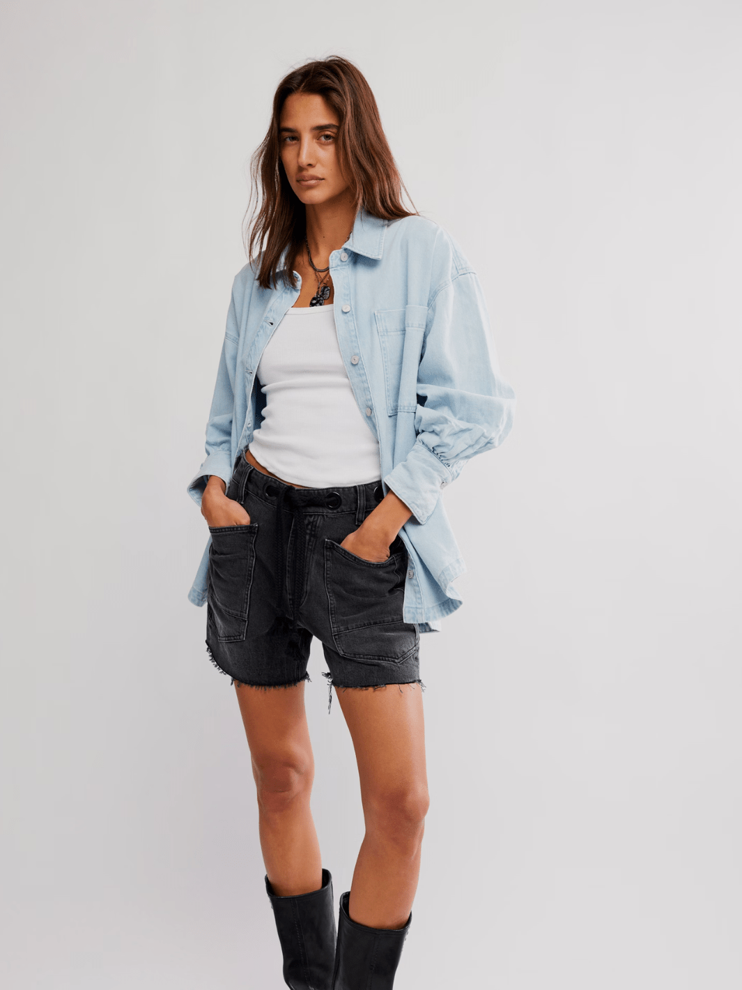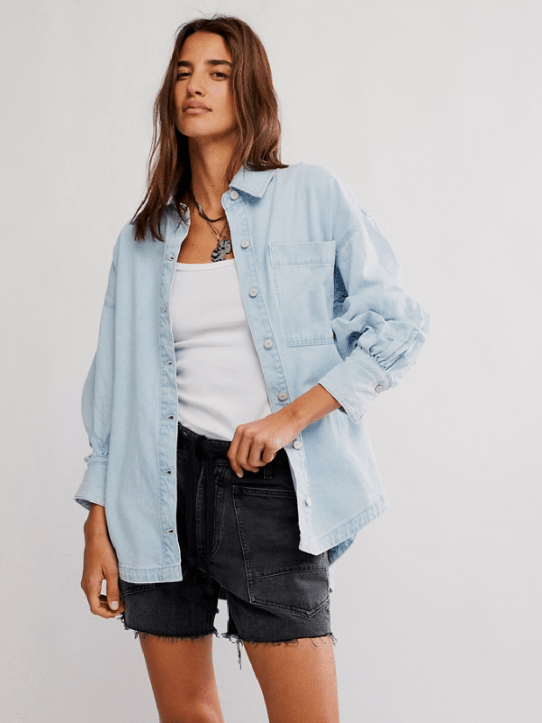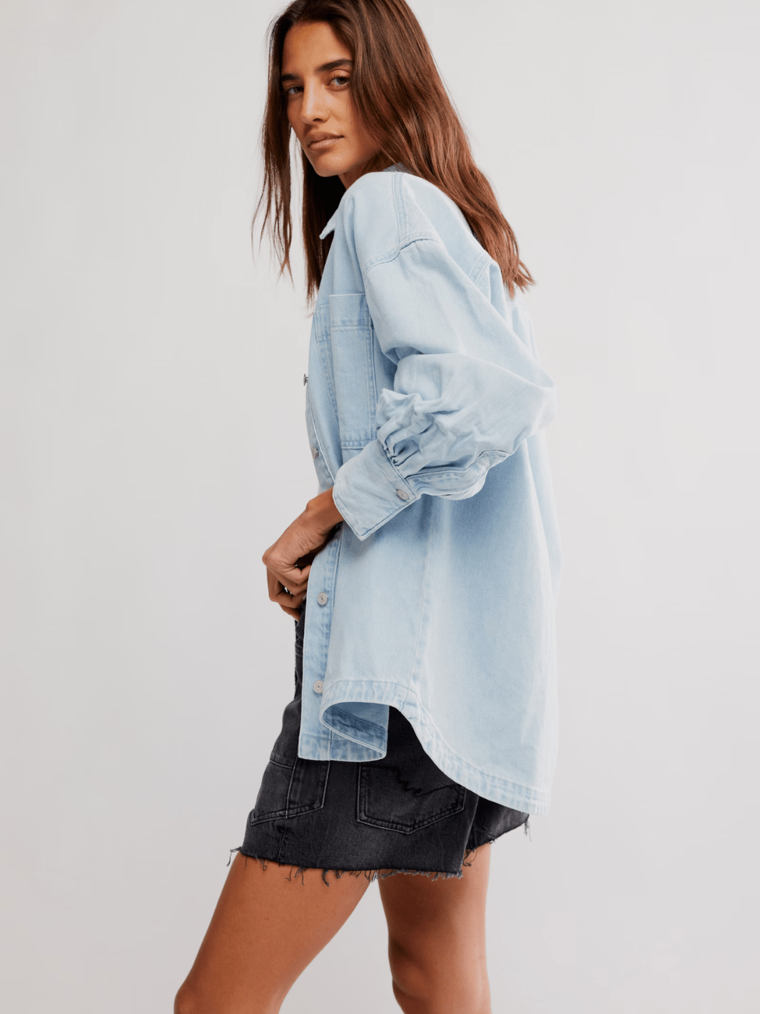 Cool, classic, and effortlessly oversized—this denim button-down is your everyday layer with major off-duty vibes.