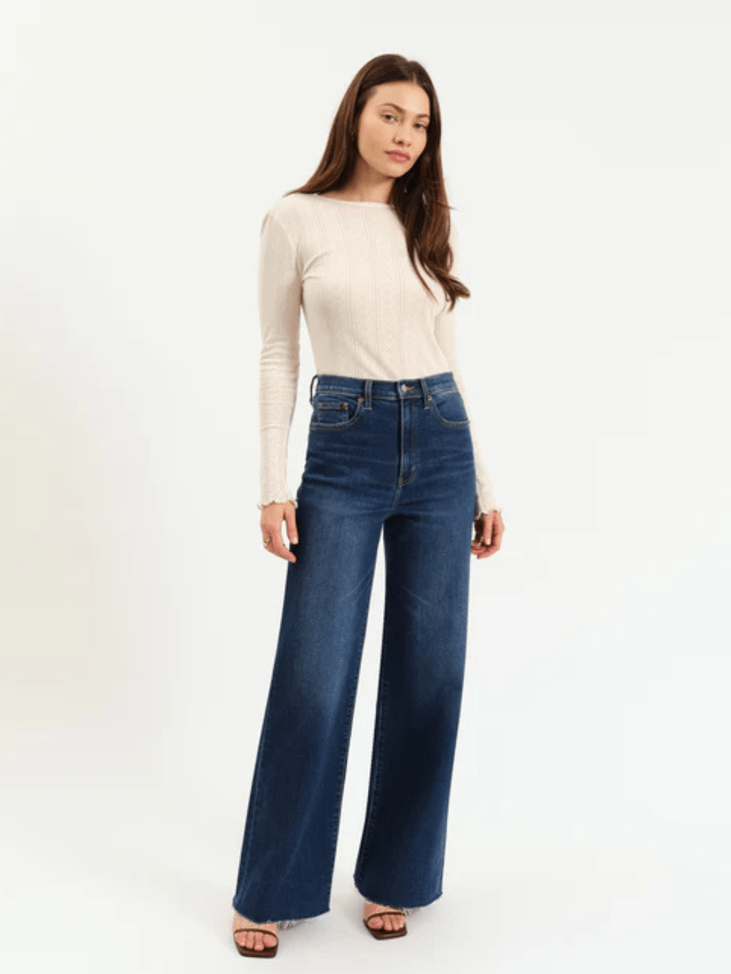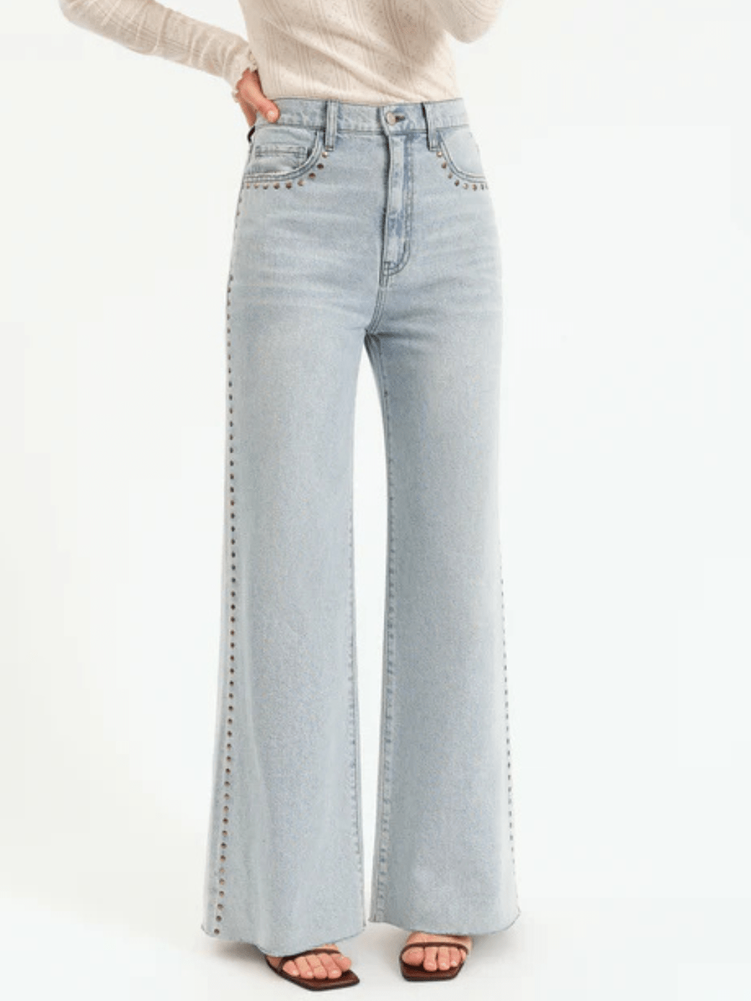 How far will you go in the Far Out Flare? Designed for the modern cool girl, this wide leg jean brings effortless edge to every outfit. With a light wash and ultra-flattering fit, it’s made to stand out while hugging you in all the right places.