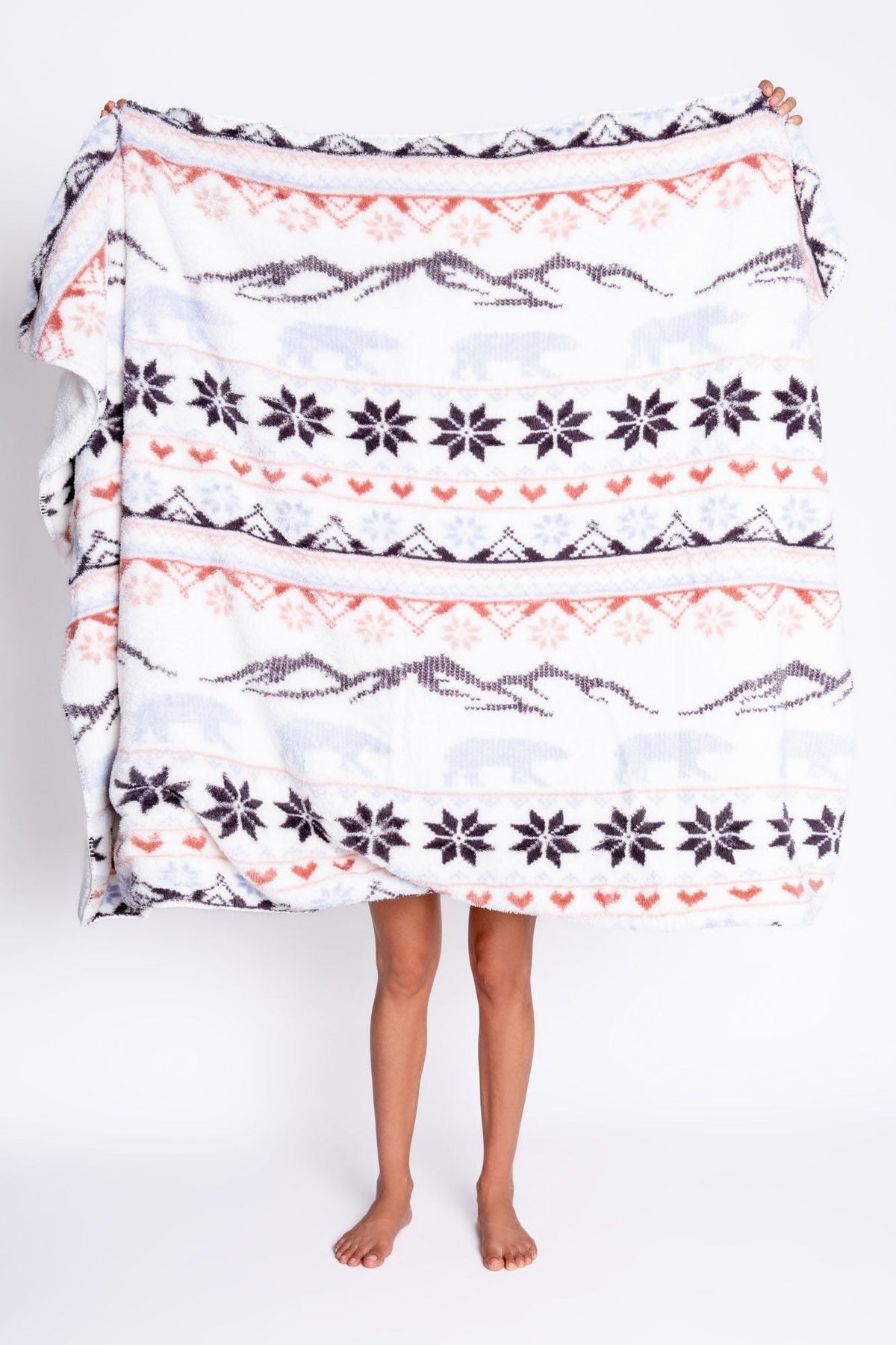 P.J. Salvage blankets will keep you cozy all season long. Graphic reversible blanket in star print, with ivory faux plush reverse side. Personal size, makes a perfect gift with a carry strap handle.