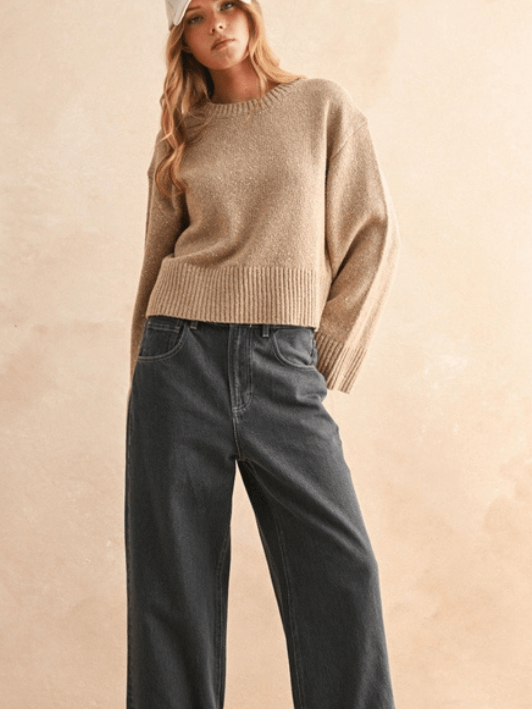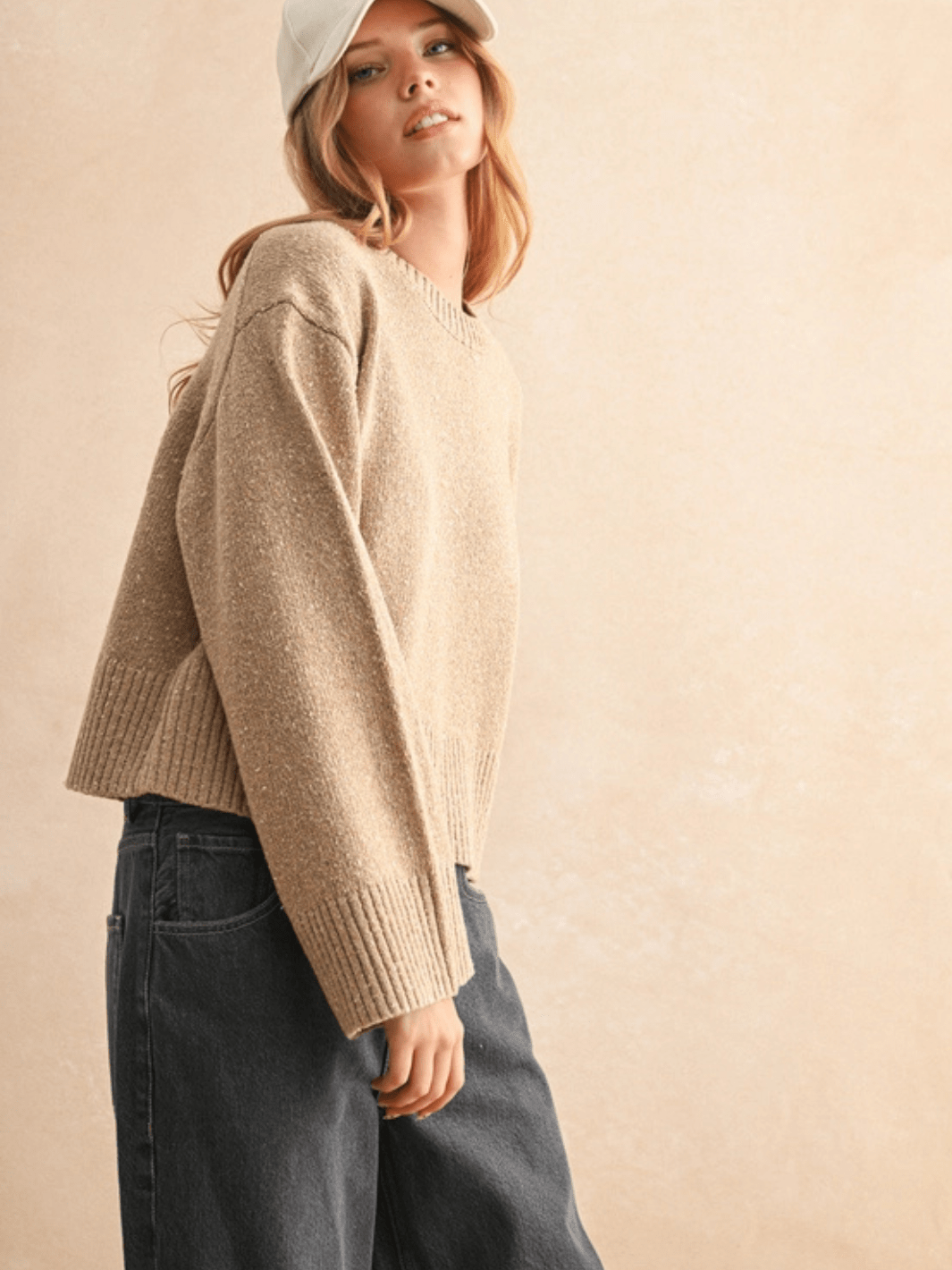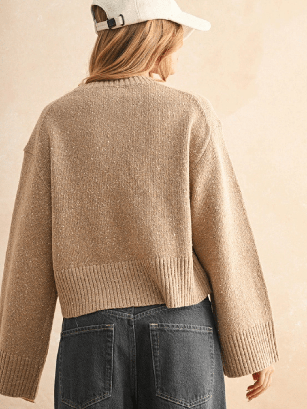 A touch of sparkle meets cozy chic. The Sprinkled Effect Sweater brings soft comfort with a subtle shimmer, making it your go-to knit for everyday ease with just the right amount of glam.