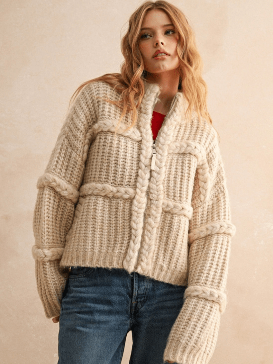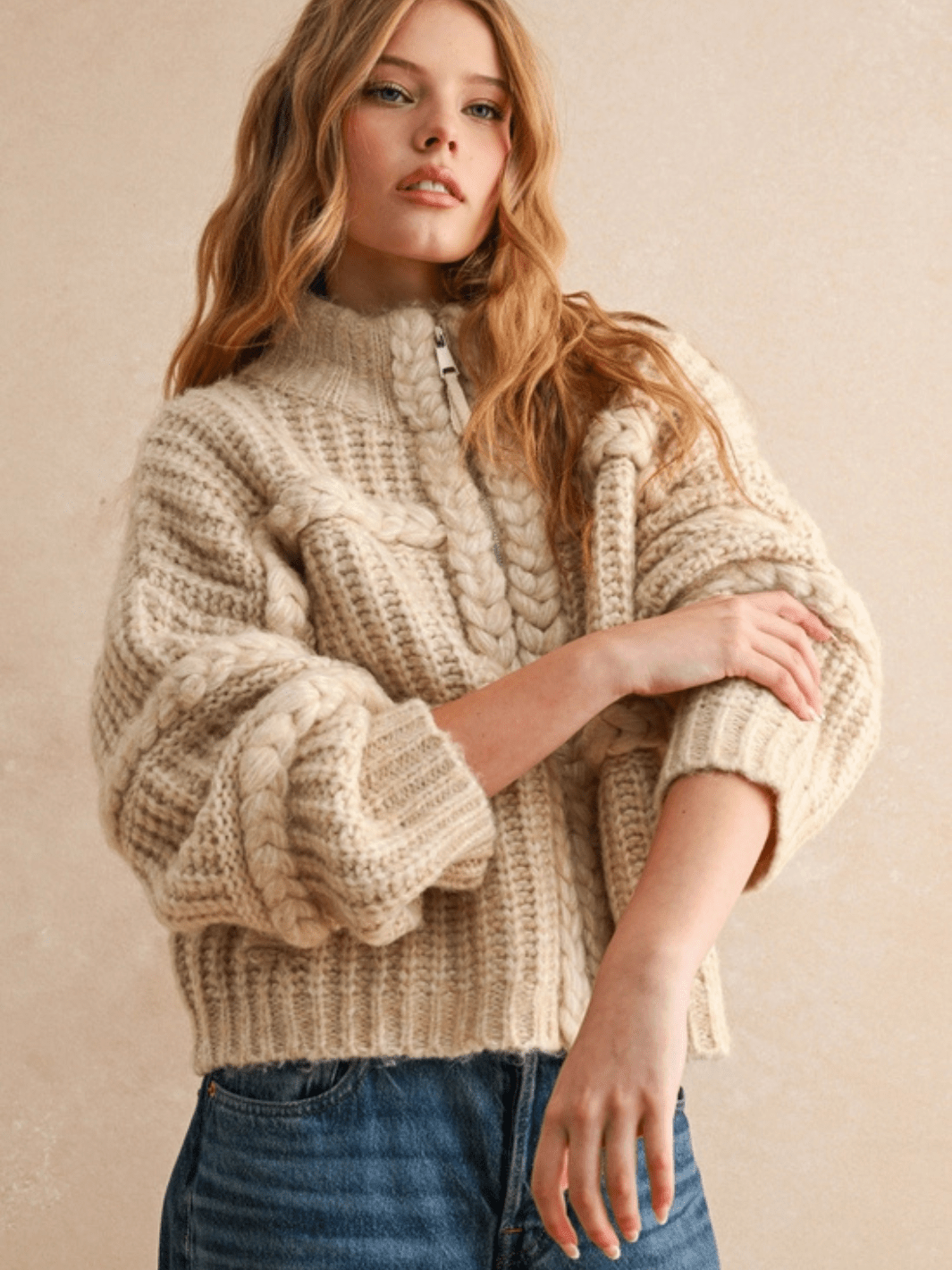 The Alpine Cable Knit Zip Sweater - Jayden P Boutique
