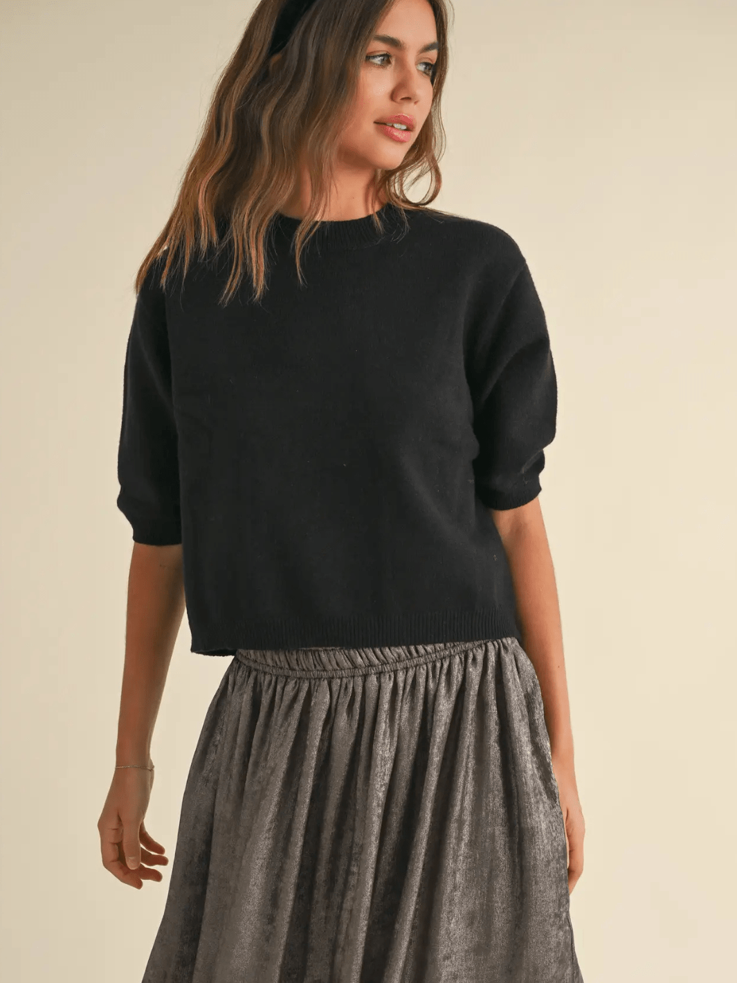 Cleo Ribbed Knit Short Sleeve Sweater Top