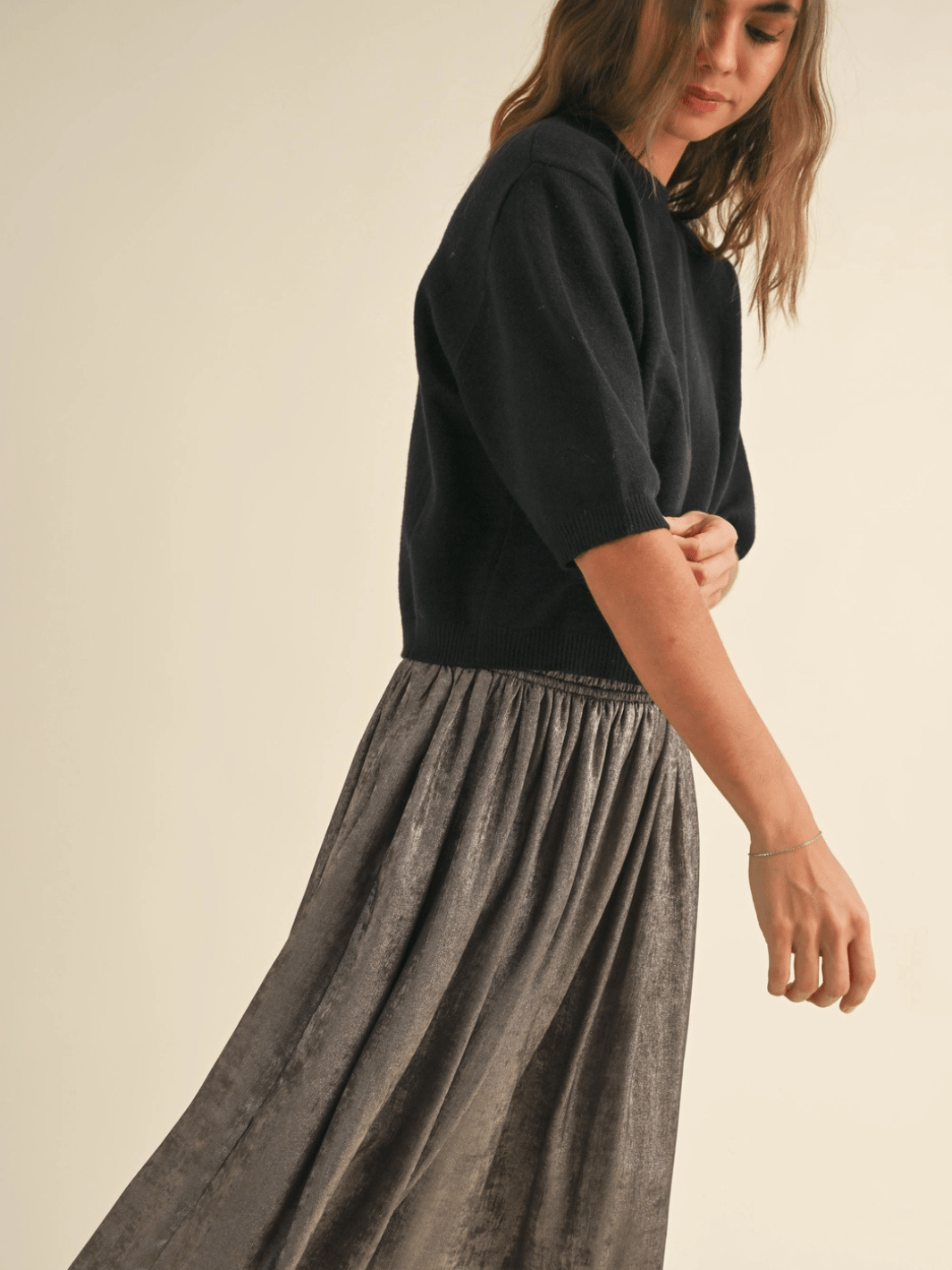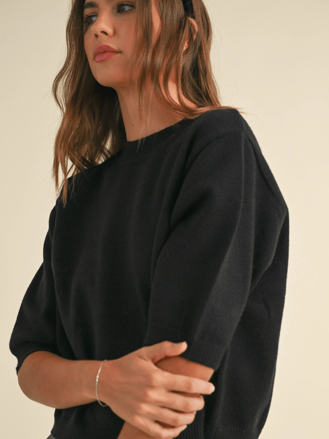Elevate your everyday with the Cleo Ribbed Knit Sweater Top—a clean and modern essential that layers like a dream. Featuring a classic crew neckline, half-length sleeves, and a softly structured silhouette, this top blends polish and comfort with ease. The semi-cropped length pairs perfectly with high-waisted skirts or denim, giving you endless outfit potential.
